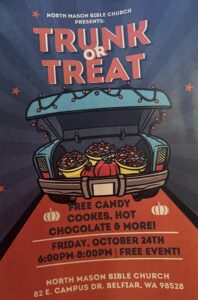 North Mason Bible Church hosts a spring carnival. All attractions and food are free! We have a BBQ with hot dogs and chips. We provide cotton candy, shaved ice, and popcorn to complete your carnival experience. There are fun carnival games and prizes. We even have horse rides. ALL FREE! The fire department and sheriff’s office swing by with their trucks and cars. We look forward to seeing you next spring. (This event is currently paused until undetermined time.)